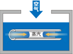 從腔底的細(xì)小給氣管注入空氣,使清洗液劇烈沸騰,通過液體突沸,將器械表面污垢剝離。 |
